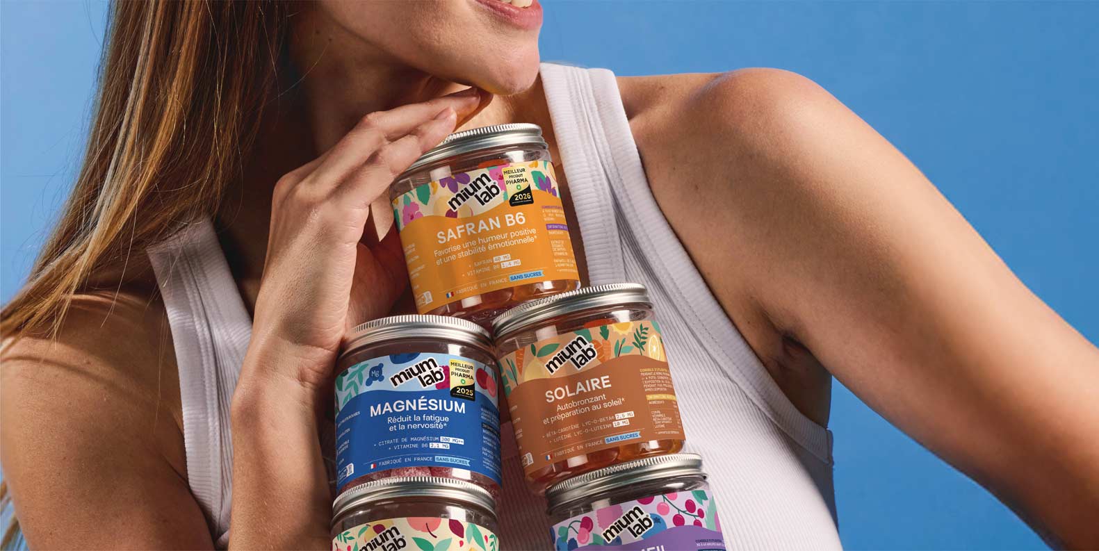 Une peau hâlée toute l’année. Nos gummies Solaire, riches en actifs végétaux tels que le Bêta-carotène, le Cuivre, la Lutéine Lyc-O-Beta® 20% VBAF brevetée et à la Vitamine E, sont spécialement formulés pour obtenir un bronzage progressif et naturel. Ils préparent efficacement la peau à l’exposition au soleil tout en aidant à prévenir le vieillissement cutané lié aux UV, pour une peau lumineuse et protégée en toutes saisons.